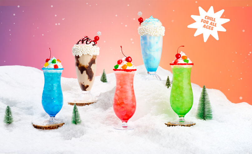 Sip something awesome together with our all-new lineup of drinks that’ll make your post-thrill chill cooler than ever! They’re only here for the season, so start sipping before they melt away.